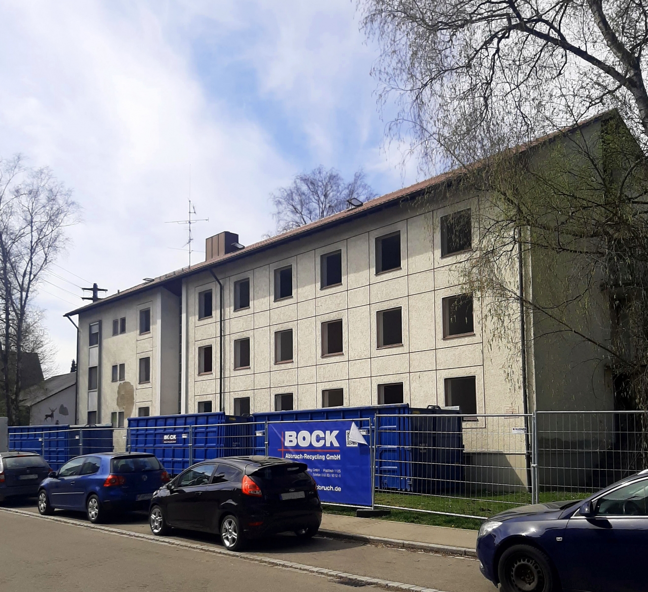 Das alte Personalwohnheim des Klinikums an der Memminger Wallensteinstraße wird abgerissen. Hier entstehen neue Parkplätze für Krankenhausmitarbeiter. Foto: Gögelein/Klinikum Memmingen
