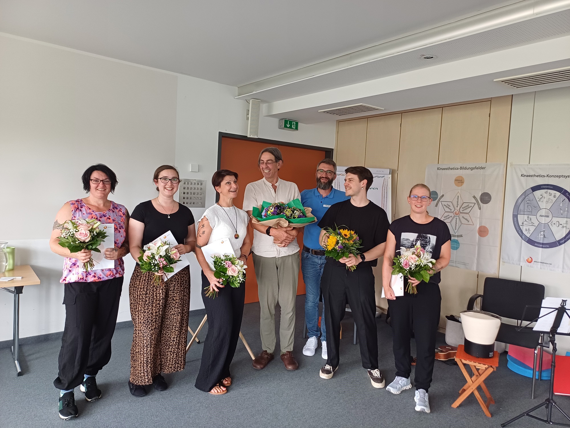 Bei Ihrer Abschlussveranstaltung präsentierten die sieben frisch gebackenen Peer-Tutoren die Ergebnisse ihrer intensiven Auseinandersetzung mit der Kinaesthetics. Die interessierten Gäste hatten dabei Gelegenheit, Unterschiede in der Qualität von Bewegung selbst zu erfahren.