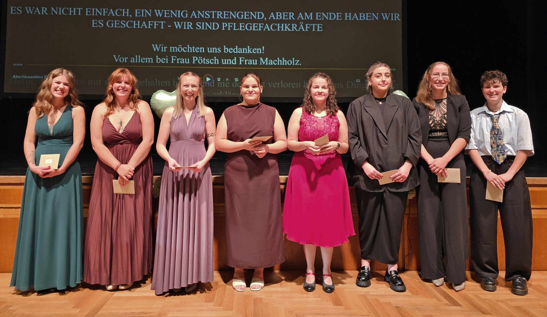 „Ihr seid tolle Persönlichkeiten und habt euch in den drei Ausbildungsjahren enorm weiterentwickelt“, lobte Schul- und Kursleiterin Michaela Machholz, die zusammen mit ihrer Kurspartnerin Katja Pötsch acht Absolventinnen mit einer Eins vor dem Komma ehren durfte: Irina Chetina, Annika Lutz, Victoria Becke, Lea Marie Brendel, Marina Feneberg, Milena Kotterer, Veronika Popp und Pia Müller.