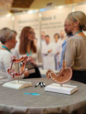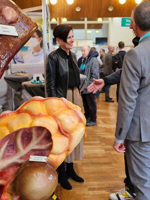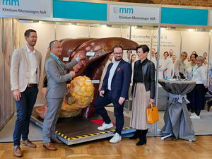 An einem überdimensionalen Leber-Galle-Pankreas-Modell informierte Chefarzt Prof. Dr. Eike Gallmeier von der Medizinischen Klinik II am Klinikum Memmingen mit seinem erfahrenen Team über die wichtigsten Erkrankungen dieser Organe wie Gallensteine, Bauchspeicheldrüsenentzündungen, Zysten und Tumore sowie ihre Therapiemöglichkeiten. Zudem sprach Prof. Gallmeier in seinem gut besuchten Vortrag über Fortschritte bei der Vorsorge, Früherkennung, Diagnostik und Behandlung von Krebserkrankungen des Verdauungssystems.