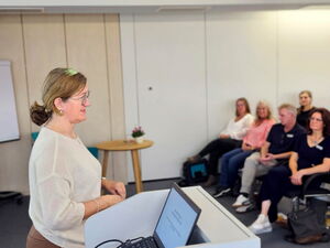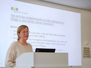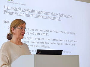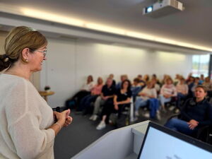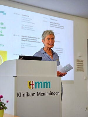 Rednerin Kerstin Paradies aus Hamburg beim Onkologie- und Palliativtag am Klinikum Memmingen.