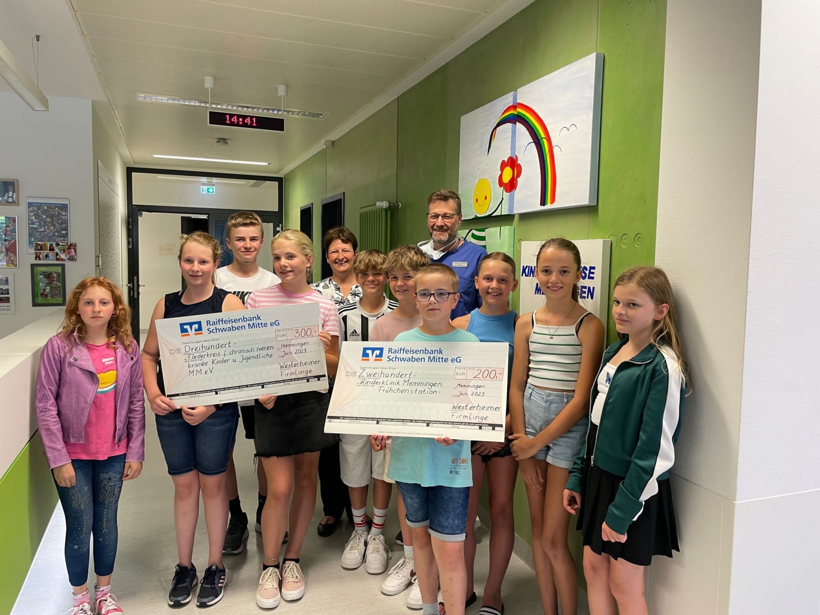 Einen Teil des Erlöses aus dem Kaffee- und Kuchenverkauf haben die Firmlinge der Pfarrgemeinde Mariä Himmelfahrt in Westerheim an die Klinik für Kinder- und Jugendmedizin am Klinikum Memmingen gespendet. 200 Euro gingen an die Station K4, auf der Frühgeborene behandelt werden. Weitere 300 Euro bekam der Förderkreis für chronisch nierenkranke Kinder und Jugendliche Memmingen e.V. für die Kinderdialyseeinrichtung des KfH Nierenzentrum am Klinikum Memmingen. Von den 200 Euro wurde Lagerungsmaterial für die kleinen Frühgeborenen finanziert.