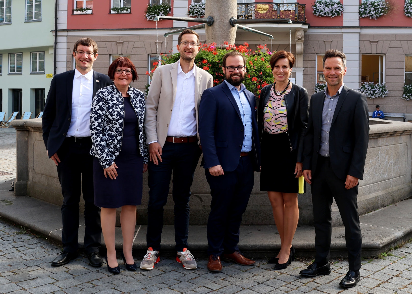 Ein starkes Team für die 18. Memminger Gesundheitstage (v.l.n.r.): Matthias Fähndrich, Ausstellungsleiter Stadt Memmingen, Ingeborg Wagner, Abteilungsleiterin Klinikum Memmingen, Maximilian Mai, Vorstand Klinikum Memmingen, Oberbürgermeister Jan Rothenbacher, Regina Merk-Bäuml, Direktorin der AOK Direktion Memmingen-Unterallgäu und Klaus Schöllhorn, Marketingleiter AOK Direktion Memmingen-Unterallgäu.