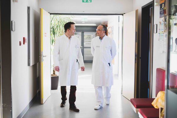 Die Leiter des Zertifizierten Magenkrebszentrums, Chefarzt Prof. Dr. Carsten Gutt (links) und Chefarzt Prof. Dr. Eike Gallmeier. Foto: Bayer