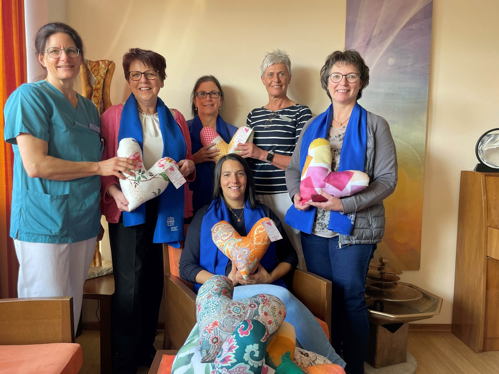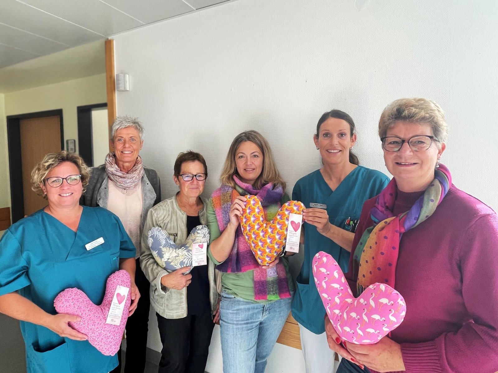 Über 200 kunterbunte Herzkissen haben der Katholische Frauenbund Benningen und der Katholische Frauenbund Pless für Brustkrebspatientinnen des Klinikums Memmingen genäht und anlässlich des Brustkrebsmonats Oktober auf den Stationen übergeben.