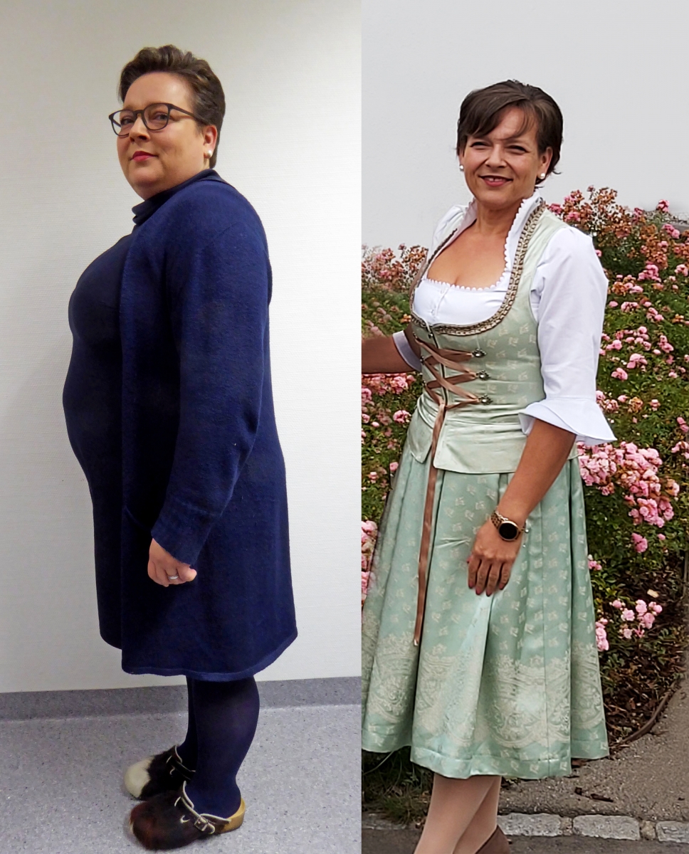 Sabine Stenzel vor und nach der Optifast-Therapie, durch die sie über 80 Pfund abgenommen hat. Fotos: privat