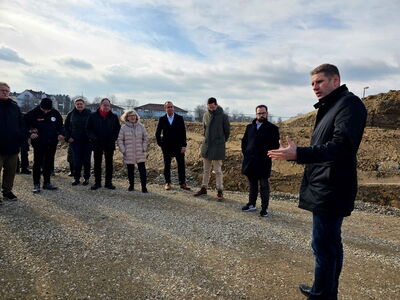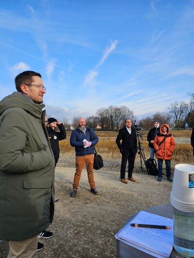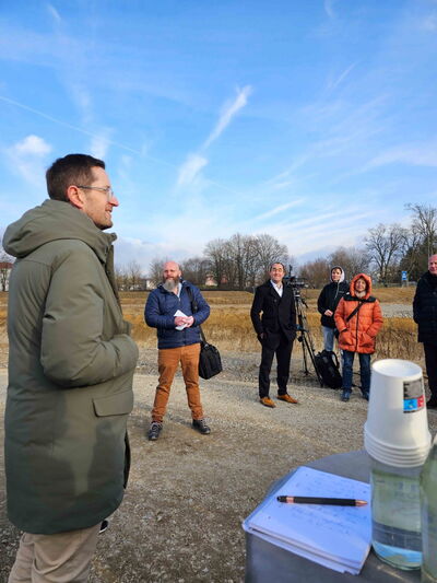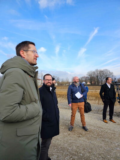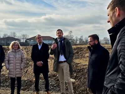 Es war der erste offizielle Pressetermin auf dem Gelände des künftigen Gesundheitscampus am Autobahnkreuz im Memminger Norden. Memmingens Oberbürgermeister Jan Rothenbacher und Klinikvorstand Maximilian Mai informierten gemeinsam mit dem Verwaltungsratsvorsitzenden der Bezirkskliniken Schwaben, Martin Sailer, dem Vorstandsvorsitzenden der Bezirkskliniken, Stefan Brunhuber, sowie dem Projektsteuerer Thomas Maier vom Planungsbüro PSB Wasner über das konkrete Bauvorhaben. Anlass waren die nun begonnen, vorbereitenden Maßnahmen vor dem eigentlichen Neubaubeginn – darunter die Verlegung des Mischwasserkanals.