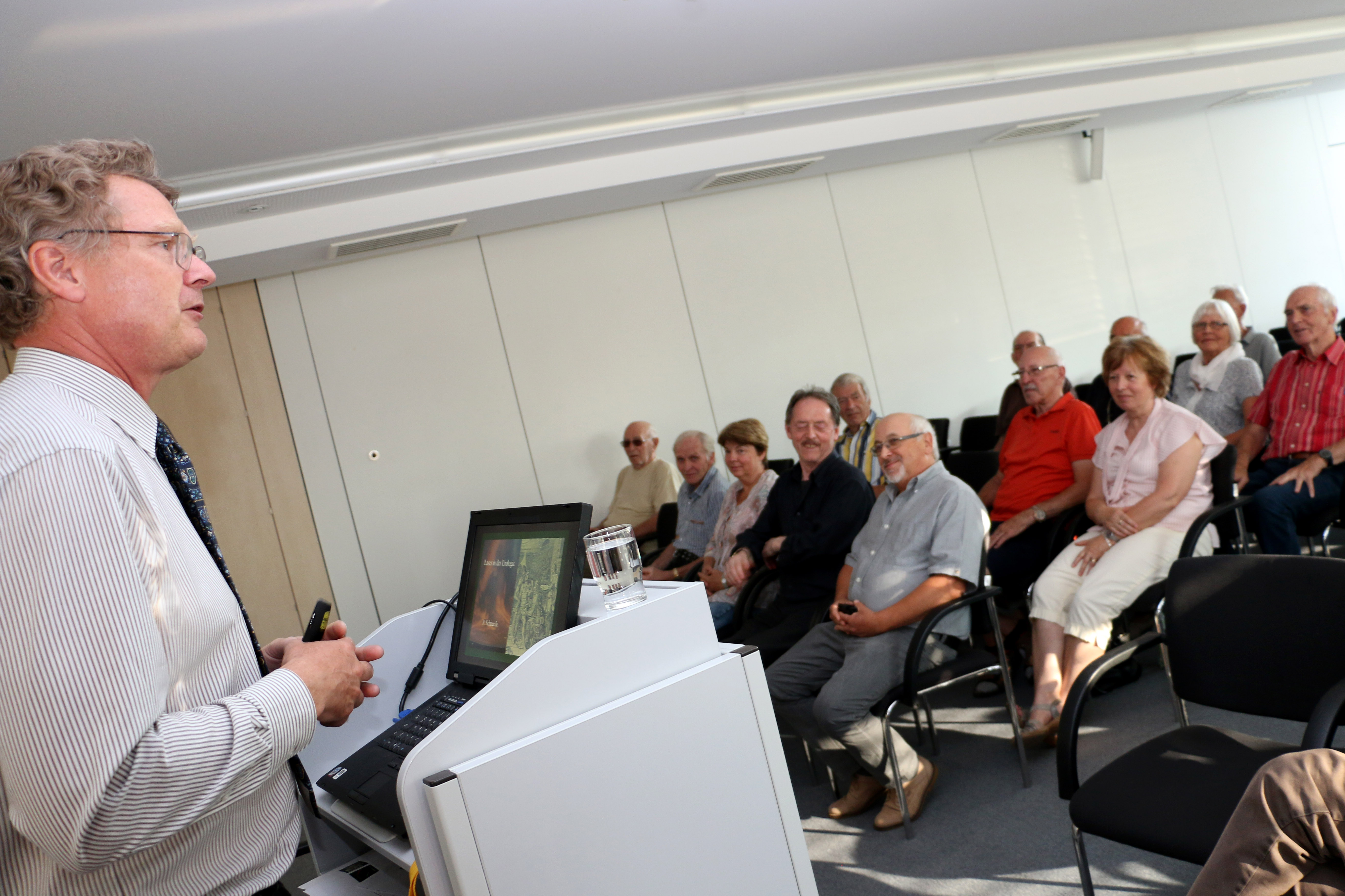 Trotz hochsommerlicher Temperaturen kamen rund 50 Interessierte ins Klinikum Memmingen, um sich bei Urologie-Chefarzt Prof. Dr. Peter Schneede über moderne Lasertechniken zu informieren. Foto: Häfele/Pressestelle Klinikum Memmingen