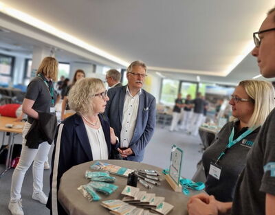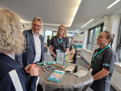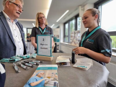 „Denn wenigen ist bewusst, wie vielfältig die Aus- und Weiterbildungsmöglichkeiten hier sind. Wir bieten allein acht verschiedene Ausbildungsberufe und drei duale Studiengänge an“, sagte Rau und nannte unter anderem Pflegefachkräfte und -helfer, Medizinische Fachangestellte, Anästhesie- und Operationstechnische Assistent*innen, Hebammen und Entbindungspfleger, Physician Assistants sowie Fachinformatiker*innen.