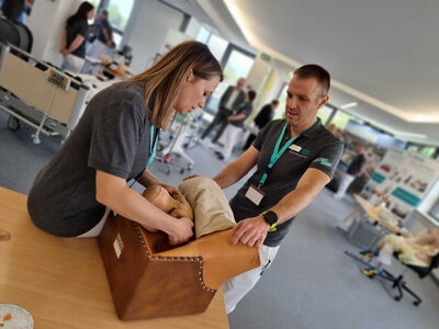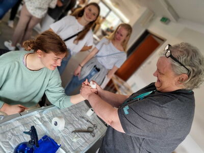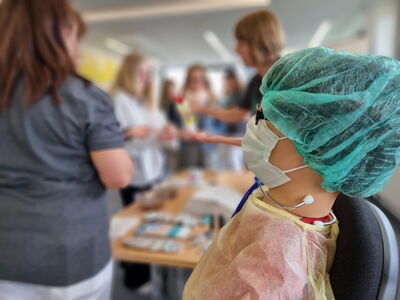 Mit Operationsinstrumenten nach Gummibärchen angeln, seinen Finger eingipsen lassen oder einer sprechenden Krankenpflegepuppe namens „Anny“ den Blutdruck messen – Die Möglichkeiten beim ersten Matching-Day am Klinikum Memmingen waren vielfältig und dementsprechend groß war das Interesse, sich über die vielen Ausbildungs- und Studienmöglichkeiten im Krankenhaus an der Memminger Bismarckstraße zu informieren.
