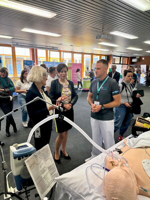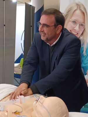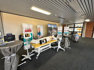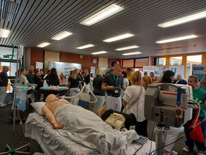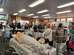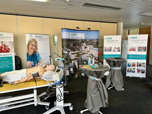 Ein Besuchermagnet auf der diesjährigen Ausbildungsmesse im Schulzentrum an der Memminger Bodenseestraße war der Stand des Klinikums Memmingen, wo Klinikvertreter über die zahlreichen Ausbildungs- und Studienmöglichkeiten im Krankenhaus informierten. Auch Gesundheitsminister Klaus Holetschek schaute am Messestand vorbei und konnte sich ein Bild davon machen, wie groß das Interesse der Schülerinnen und Schüler war. Gefragt waren sowohl „klassische“ Klinikberufe wie die Pflege, der anästhesie-technische oder operations-technischen Bereich. Daneben interessierten sich die Jugendlichen für Verwaltungstätigkeiten wie eine Ausbildung im kaufmännischen Bereich oder in der IT-Abteilung des Krankenhauses.