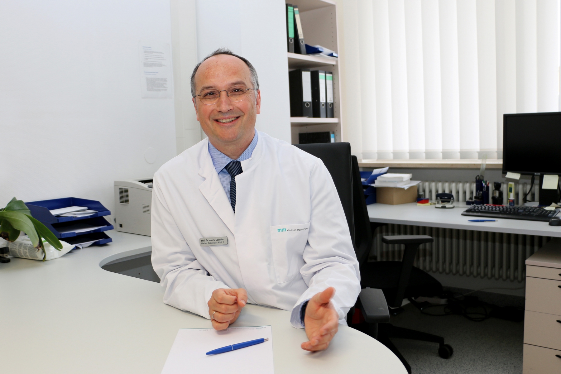 Arbeiten, schlafen, arbeiten – So sieht derzeit der Alltag von Prof. Dr. Eike Gallmeier aus, dem neuen Chefarzt der Medizinischen Klinik II am Klinikum Memmingen. „Gerade in der Anfangsphase ist das Arbeitspensum natürlich enorm.“ Gallmeier ist als Leitender Oberarzt und Stellvertretender Kinikdirektor der Abteilung Innere Medizin und Gastroenterologie des Uniklinikums Marburg Anfang des Jahres nach Memmingen gewechselt, wo er eine breit aufgestellte internistische Abteilung übernommen hat.
