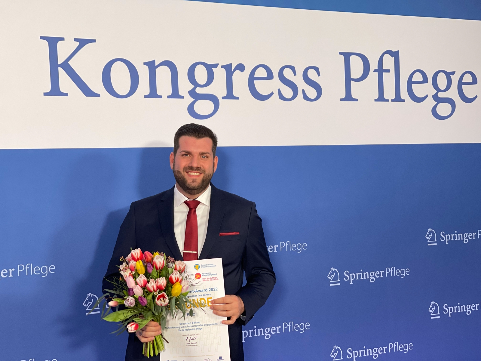 Der 34-Jährige holte sich den zweiten Platz bei der Verleihung zum Nachwuchs-Pflegemanager 2022 des Bundesverbands Pflegemanagement. Die Preisverleihung erfolgte im Rahmen der Eröffnungsfeier zum Kongress Pflege 2022 (von Springer Pflege), der heuer wegen der Corona-Pandemie online stattfand.