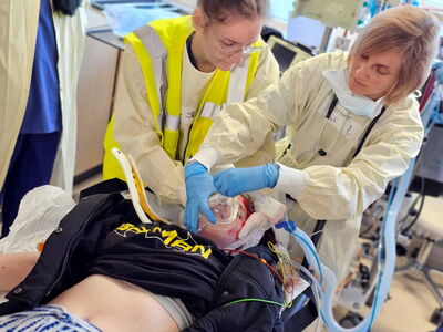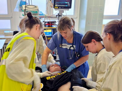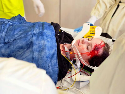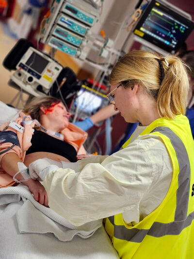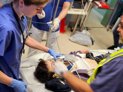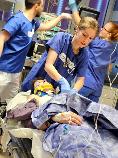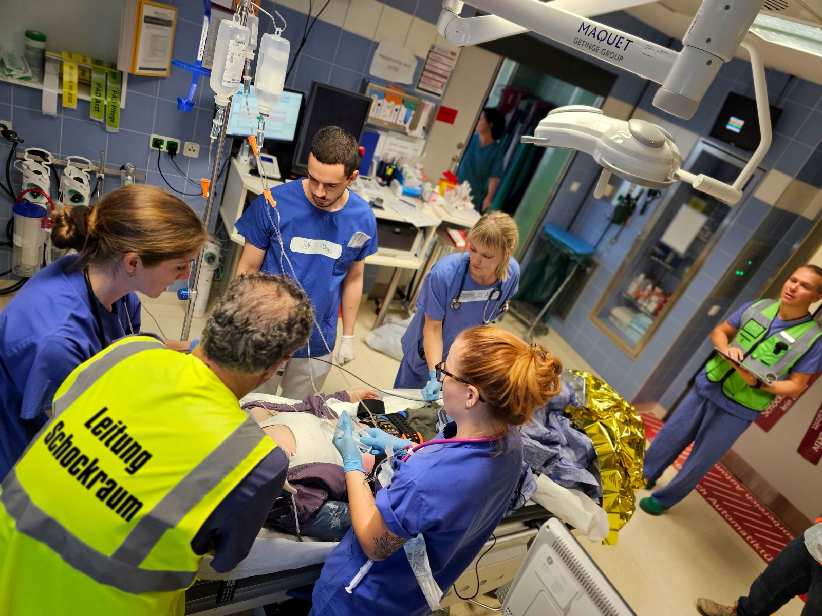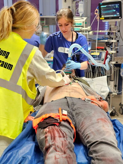 Versorgung einer Schwerverletzten im Schockraum.