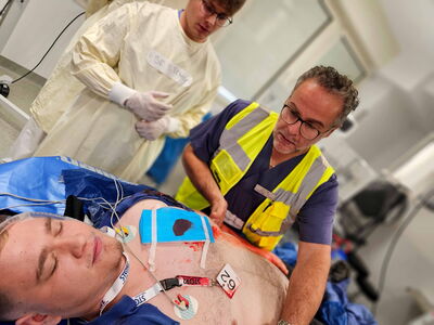 „Die Übung hat gezeigt, dass wir sehr gut aufgestellt sind und dass das Zusammenspiel der Mitarbeitenden auch dann gut funktioniert, wenn man räumlich und personell an seine Grenzen stößt“, betonte Klinikdirektor Roger Kolb. „Auch die etablierten Abläufe, die wir im Schockraum bei der Versorgung von Schwerstverletzten haben, verliefen reibungslos.“