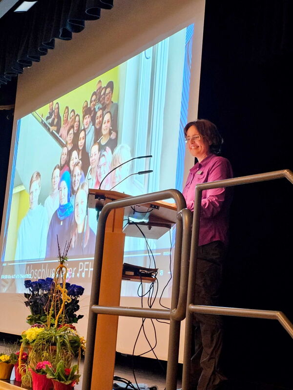 „Es war eine hochmotivierte und ehrgeizige Truppe, die von Alter und Lebenserfahrung nicht unterschiedlicher hätte sein können“, erzählte Schulleiterin Michaela Machholz über den Examenskurs. „Manche hatten bereits eine Ausbildung oder viele Jahre Berufserfahrung hinter sich und wollten einen neuen Karriereweg einschlagen, für andere wiederum war es der erste Einstieg ins Berufsleben.“ Machholz lobte in ihrer Rede auch die Kursleiterin Melanie Amatruda, die die Klasse auf engagierte und empathische Weise immer positiv unterstützt habe.