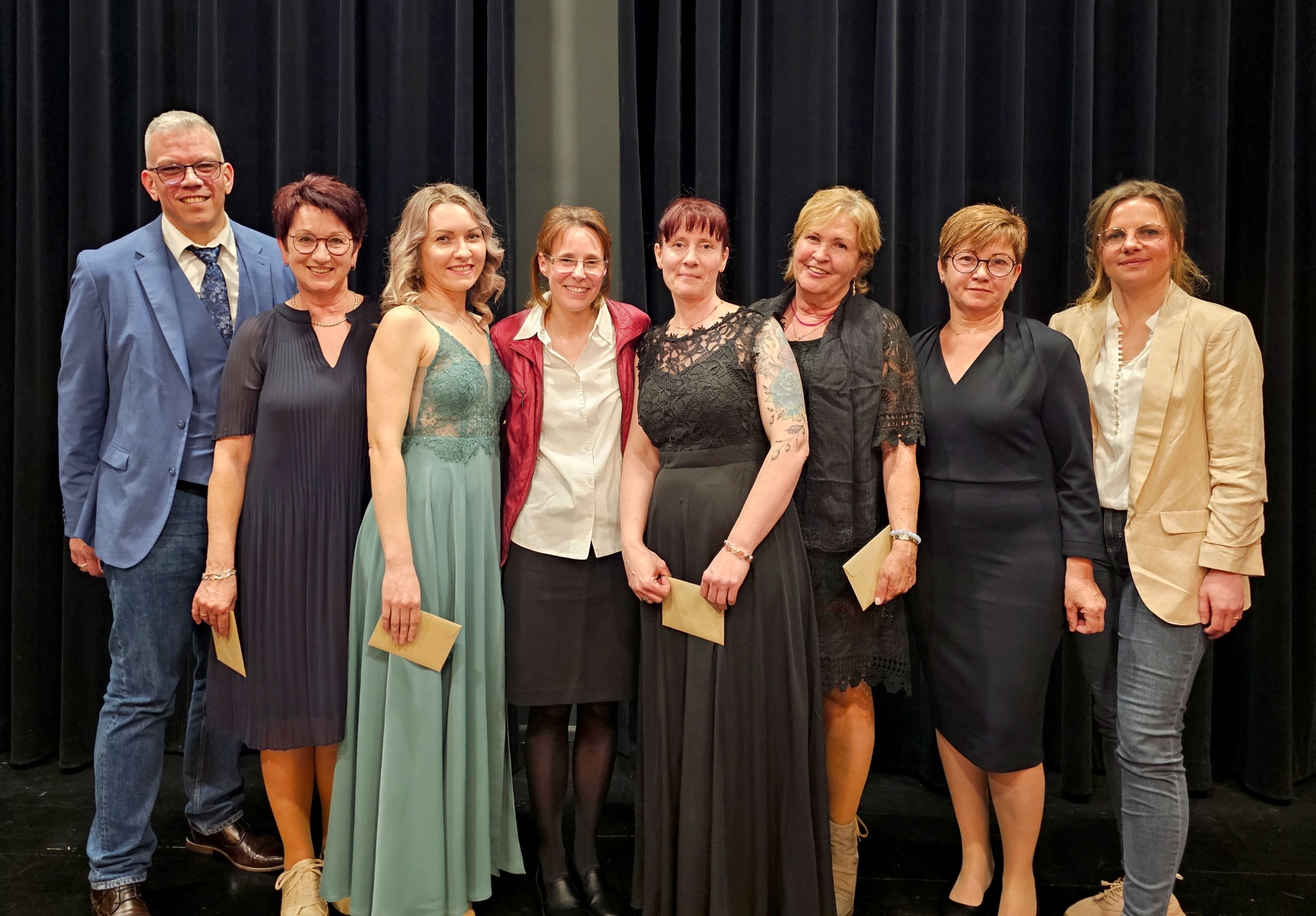 Besonders geehrt wurden sieben Auszubildende, die ihr Examen mit einer Eins vor dem Komma abschlossen: Andrea Szyry (Note 1,0), Roswitha Betzler, Roland Dreher, Anna Eswein, Eva Maria Meier, Lydia Woitalka-Presser und Annett Wuttke.