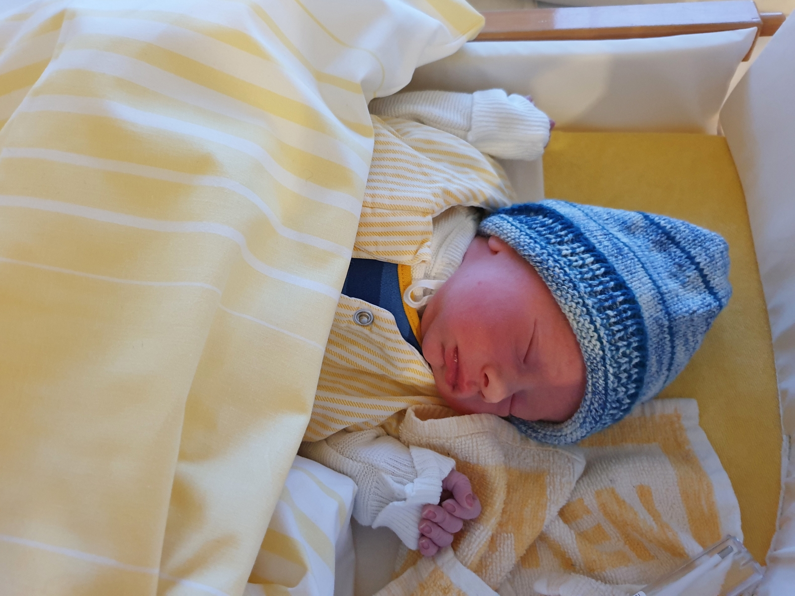 Am heutigen 1. Januar 2021 kam um 4:41 Uhr Vincent Finn im Klinikum Memmingen zur Welt und ist damit das Neujahrsbaby 2021. Foto: Häfele/Klinikum Memmingen