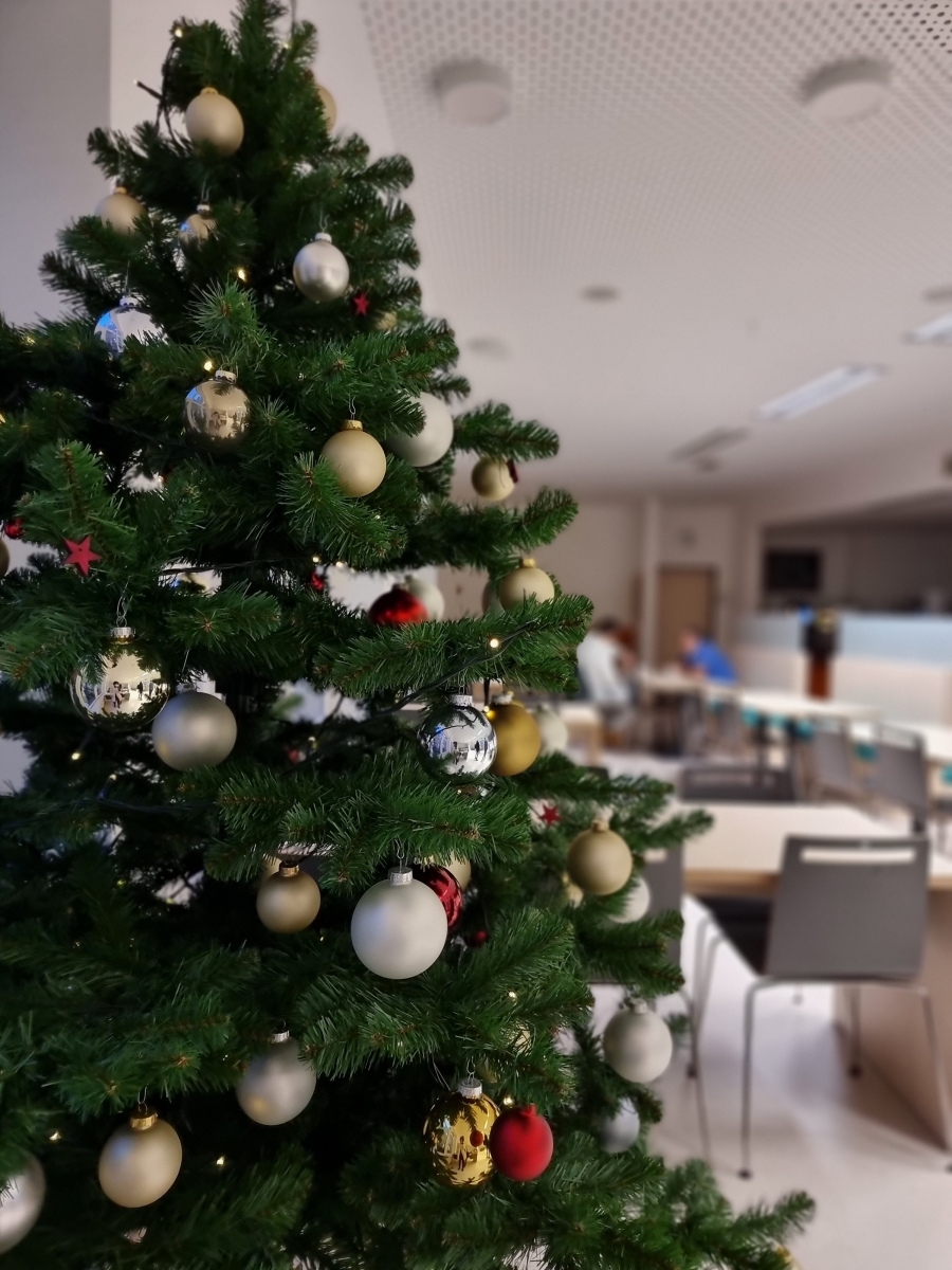 Auch bei den Hebammen im Kreißsaal wird gewichtelt und auch sie stellen gemeinsam ein kleines Buffet zusammen, das sie, falls es die Zeit zulässt und sich nicht gerade ein kleines „Christkind“ im Kreißsaal ankündigt, gemeinsam einnehmen möchten. Den festlich geschmückten Kunstnadelbaum auf ihrem Stationsflur haben Mitarbeiter der Haustechnik bereits Anfang Dezember angeliefert und aufgestellt.