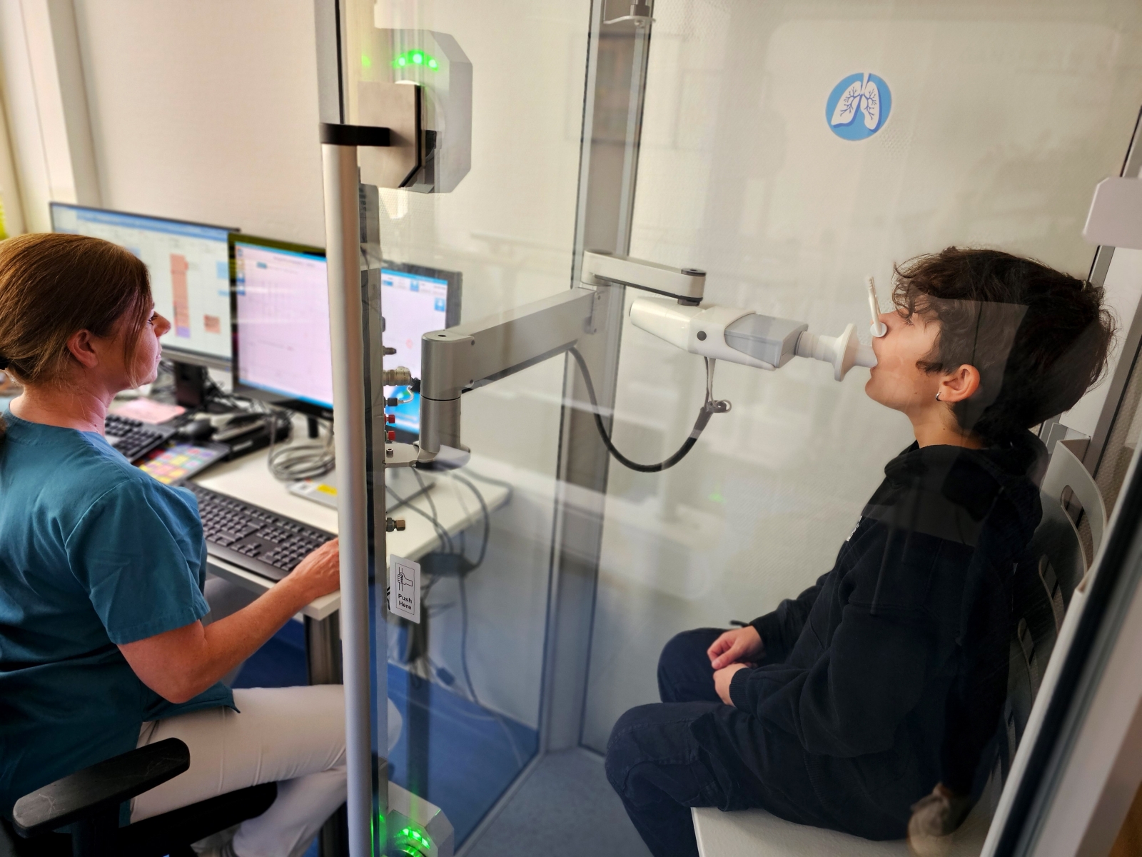 Prof. Frommhold: In der Klinik können wir durch einen großen Lungenfunktionstext im sogenannten Body-Plethysmographen noch genauere Messungen zu verschiedenen Lungen- und Atemparametern vornehmen. Dabei sitzt der Patient in einer luftdichten Kammer und atmet über ein Mundstück in einen separaten Raum. In der Kammer entstehen atmungsbedingt Druckschwankungen. Daraus wird beispielsweise der Druck in den Lungenbläschen ermittelt. Und natürlich kommen wir bei jeder Art von Notfall ins Spiel – sei es bei akuter Atemnot, einem schweren Asthmaanfall oder nicht nachlassenden Symptomen.