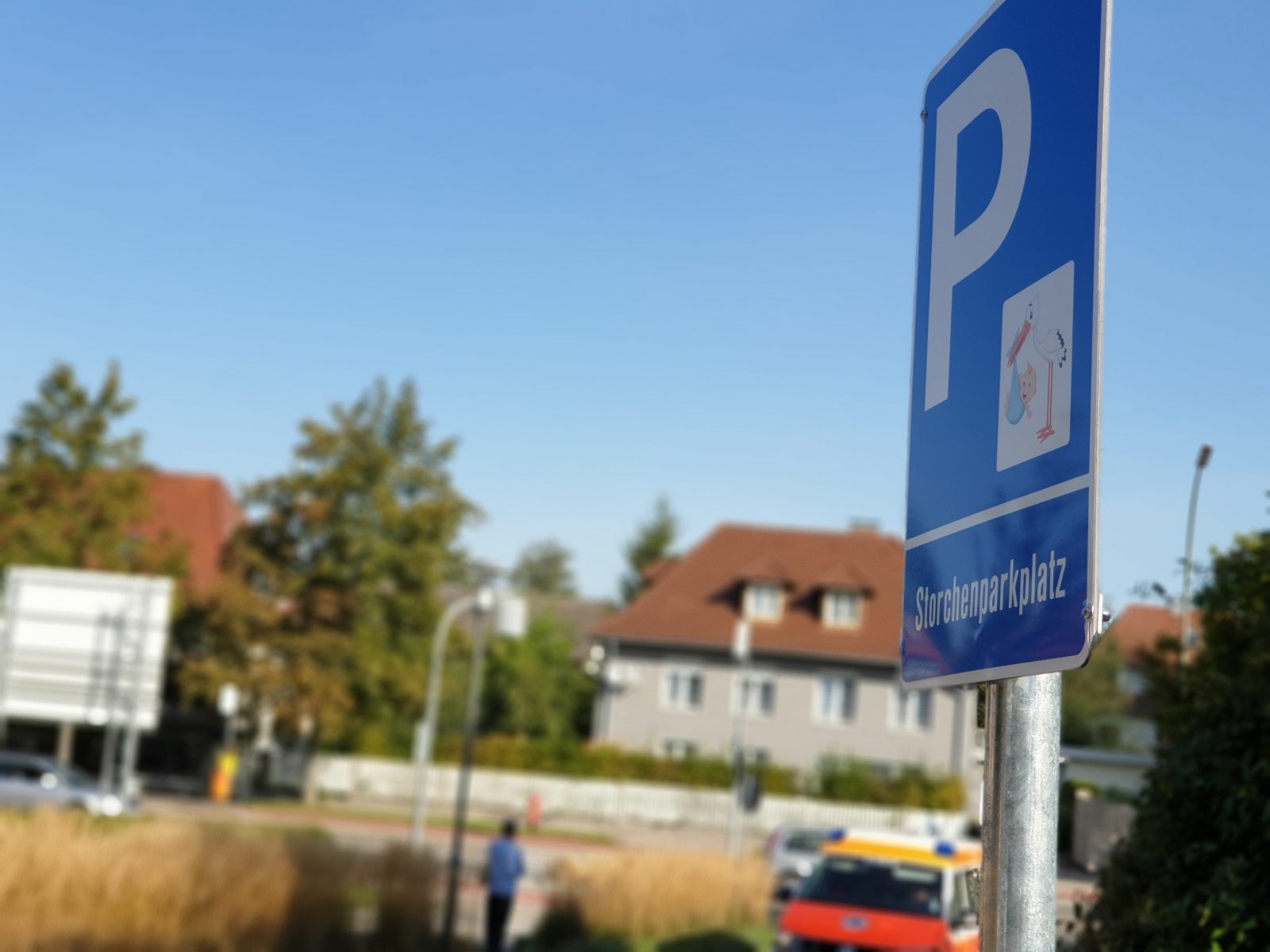 Der Parkplatz ist für werdende Eltern reserviert, die schnellstmöglich in den Kreißsaal müssen. Er ist mit einem Storchenbild versehen, direkt vor dem Haupteingang lokalisiert und kostenfrei. Vom Parkplatz aus sind es nur wenige Meter in den Kreißsaal. So bleibt Eltern, deren Nachwuchs es besonders eilig hat, eine aufwändige Parkplatzsuche erspart.