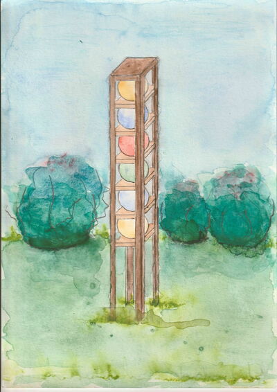 So könnte eine Stele mit Glaskugeln aussehen. Skizze: Lioba Abrell