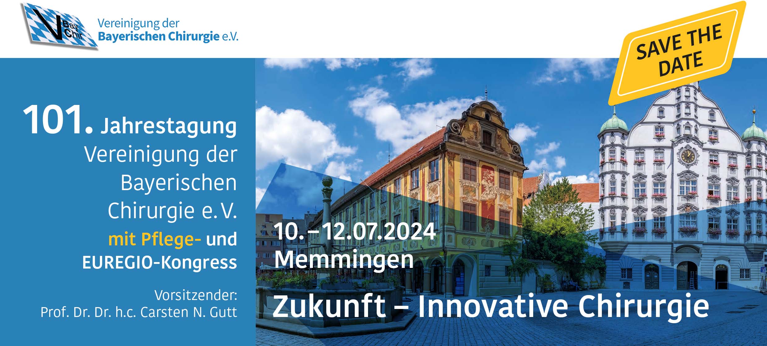 Unter dem Vorsitz von Chefarzt Prof. Dr. Dr. h.c. Carsten N. Gutt findet die 101. Jahrestagung der Vereinigung der Bayerischen Chirurgie e.V. zum ersten Mal in Memmingen und auch zum ersten Mal im Allgäu statt.
