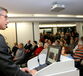 Referent Stephan Mayer von der Uniklinik Augsburg beim Vortrag zum Thema „Atmungs- und Beatmungsmangement complete“. Der Atemtherapeut (DGP) und Klinikspezialist für invasive und nicht invasive Beatmung hält am Klinikum Memmingen ein Zweitagesseminar. Begleitend zu den Vorträgen gibt es eine Industrieausstellung diverser Hersteller.