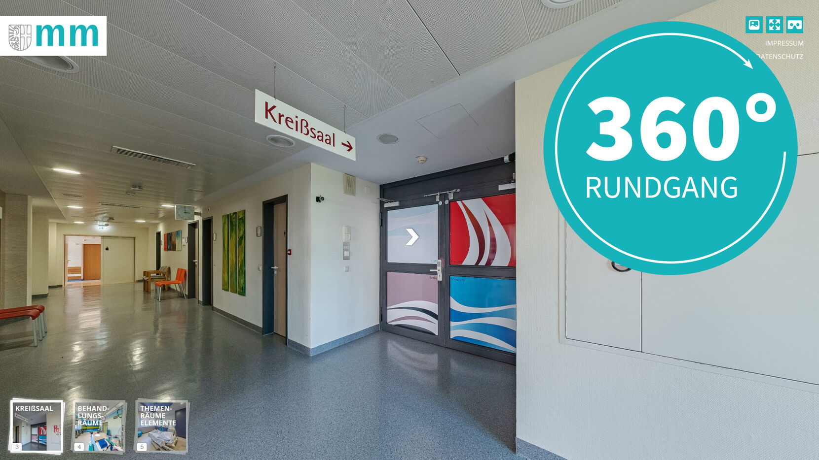 es freut uns, Ihnen mit diesen 3-D-Bildern eine „virtuelle Kreißsaalführung“ anbieten zu können. Unsere Kreißsäle wurden jeweils nach einem der vier Grundelemente Feuer, Wasser, Erde und Luft gestaltet und erzeugen ein Gefühl des Wohlbefindens. Besuchen Sie unseren Kreißsaalbereich, indem Sie sich durch die einzelnen Räume klicken. Sie können hierbei in den Räumen voranschreiten und den Blick in alle Richtungen wenden. Damit können Sie sich einen Rundumblick verschaffen. Wir wünschen viel Freude dabei und hoffen, Ihnen damit einen Eindruck von unseren Räumlichkeiten und unserer geburtshilflichen Philosophie vermitteln zu können. Es würde uns sehr freuen, Sie bald bei uns im Kreißsaal begrüßen zu dürfen.