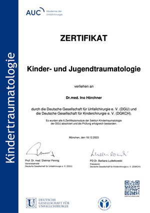Im Bereich des Bewegungsapparates verlangt die Kindertraumatologie spezielle Kenntnisse über das heranwachsende Skelett in den verschiedenen Altersstufen. Die therapeutische Vorgehensweise der Frakturversorgung unterscheidet sich erheblich von der des Erwachsenen. Spezialisierte und erfahrene Ärzte der Klinik für Unfallchirurgie, Handchirurgie und Orthopädie (Chefarzt Prof.Dr.med.C.Dehner) sind dahingehend ausgebildet.